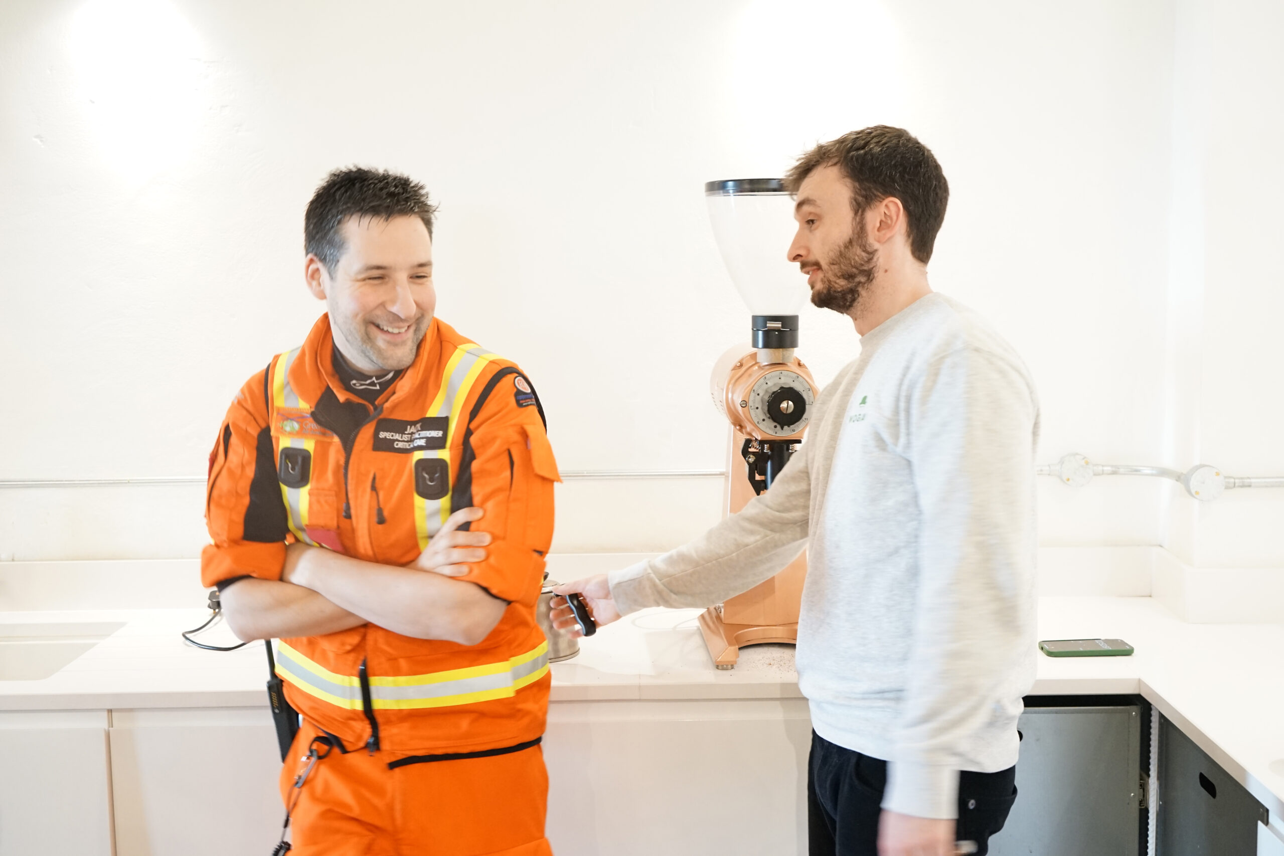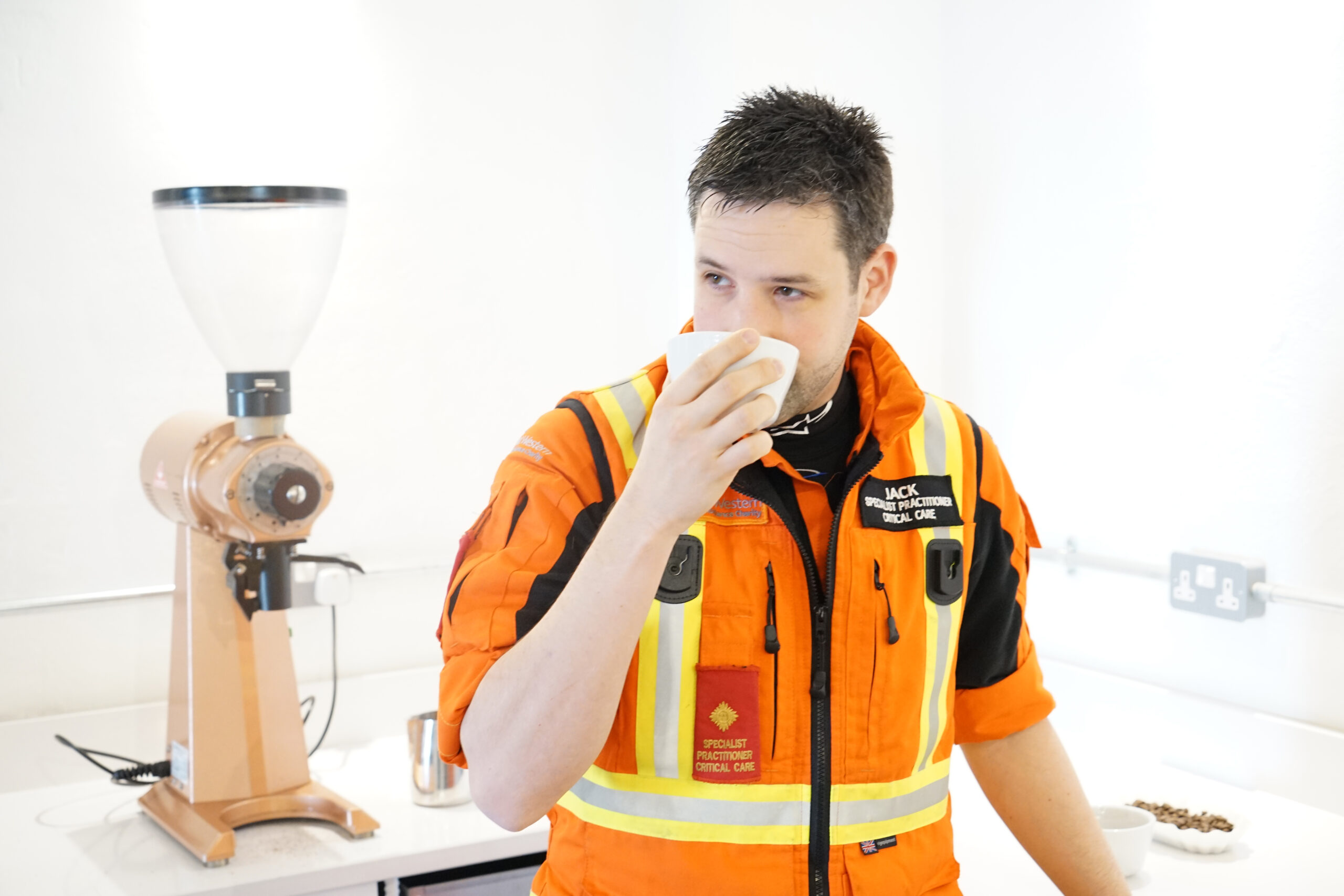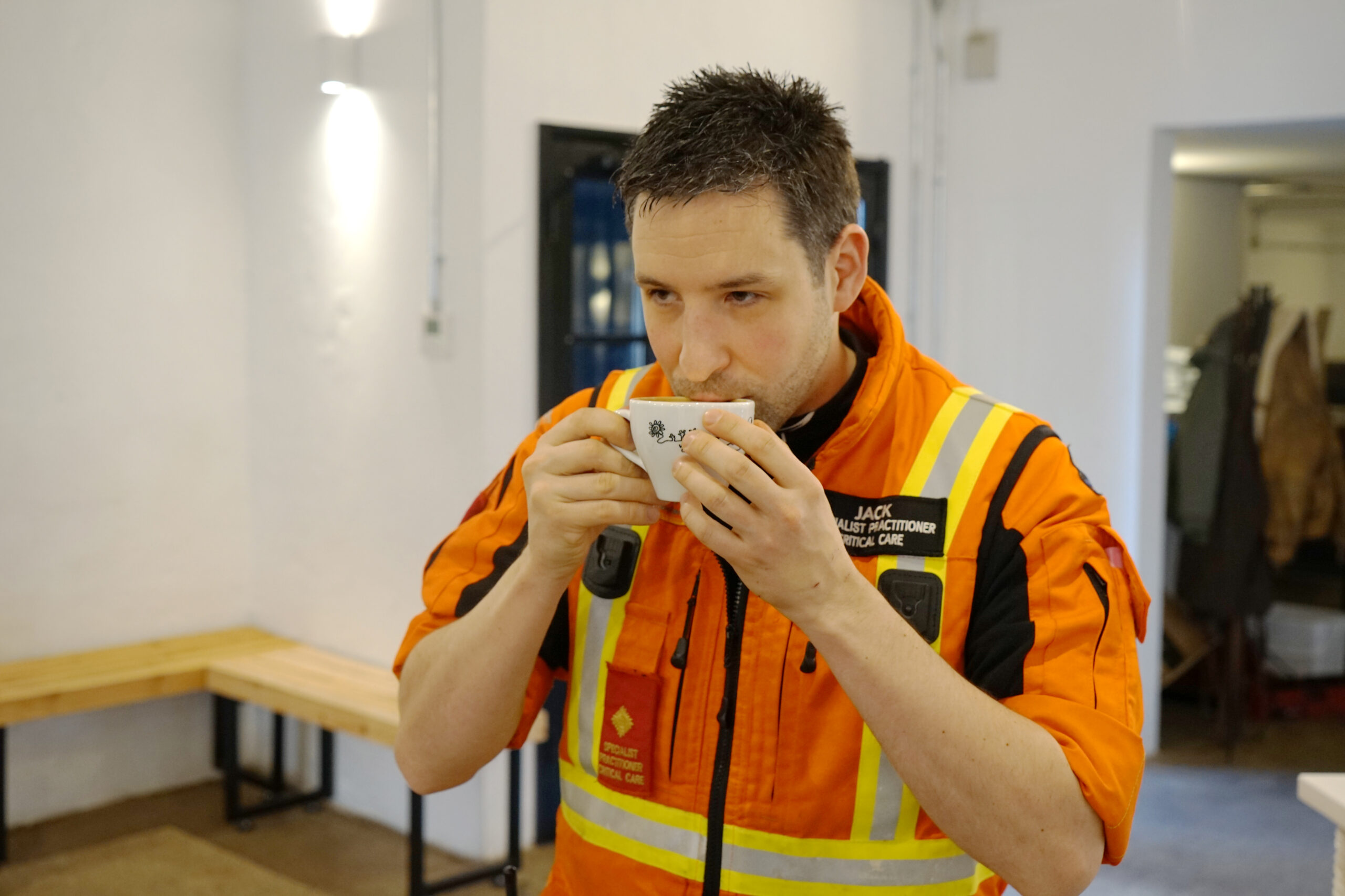 "We get through a lot of (tea and) coffee on the airbase as you can imagine. Coffee is kind of the staple fluid for us and we’ve always got a pot on the go. Whether we’re back from a tough incident or we’re just doing general admin, we’ve always got coffee on. I swear the majority of us run on coffee.