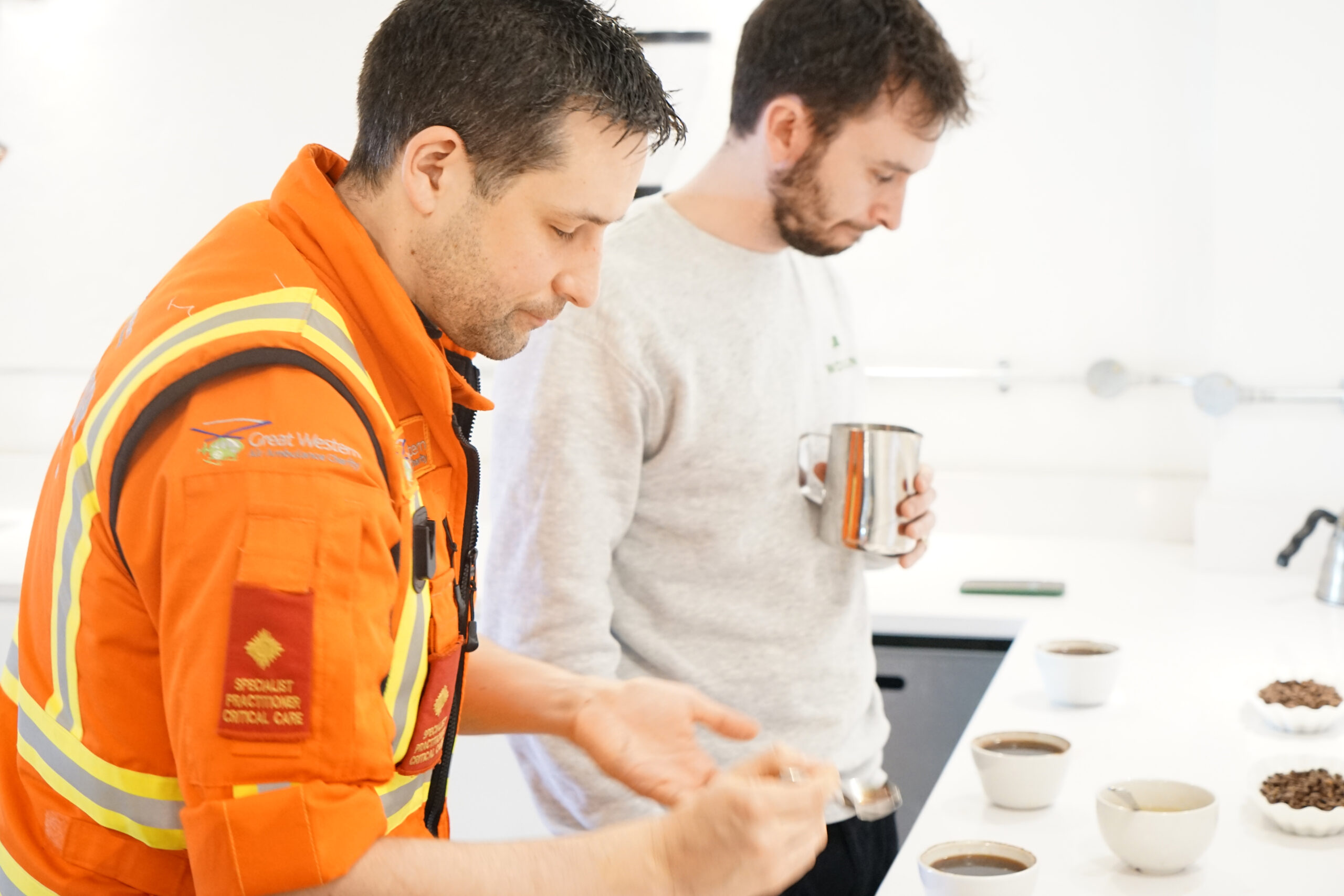 April 6, 2023We've teamed up with the wonderful people at Wogan Coffee to make our own delicious blend of speciality coffee. We sent Specialist Paramedic in Critical Care Jack Kilminster over to Wogan's Training Campus to create a coffee blend to help keep us flying.