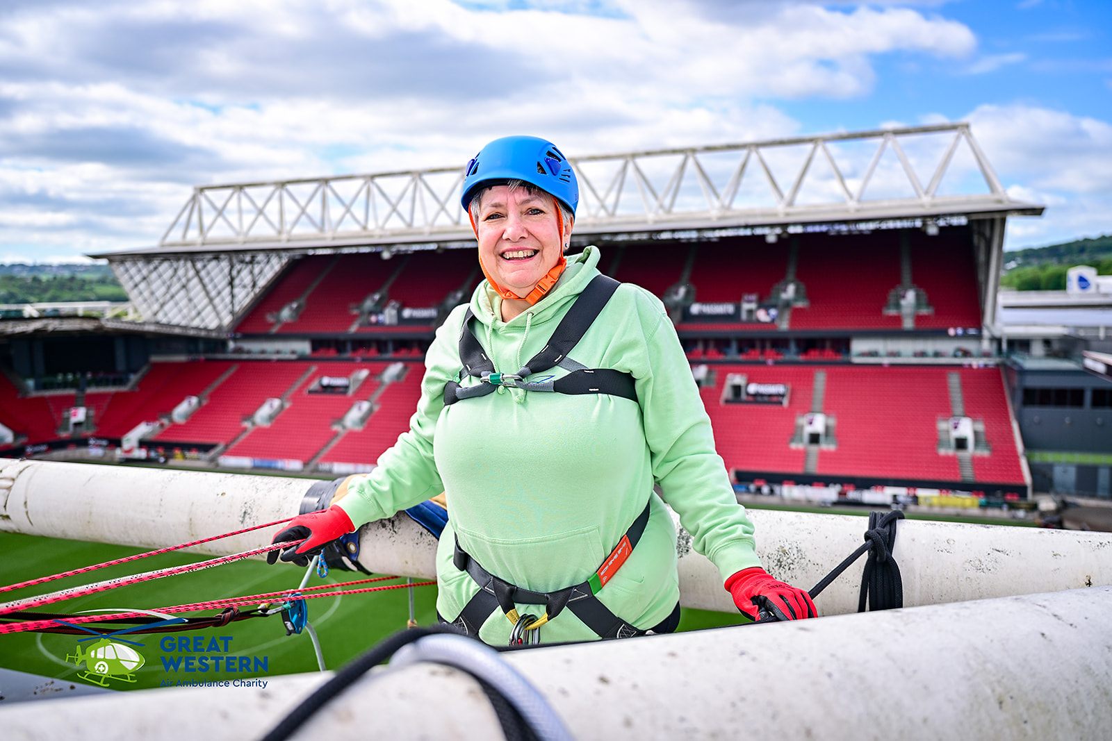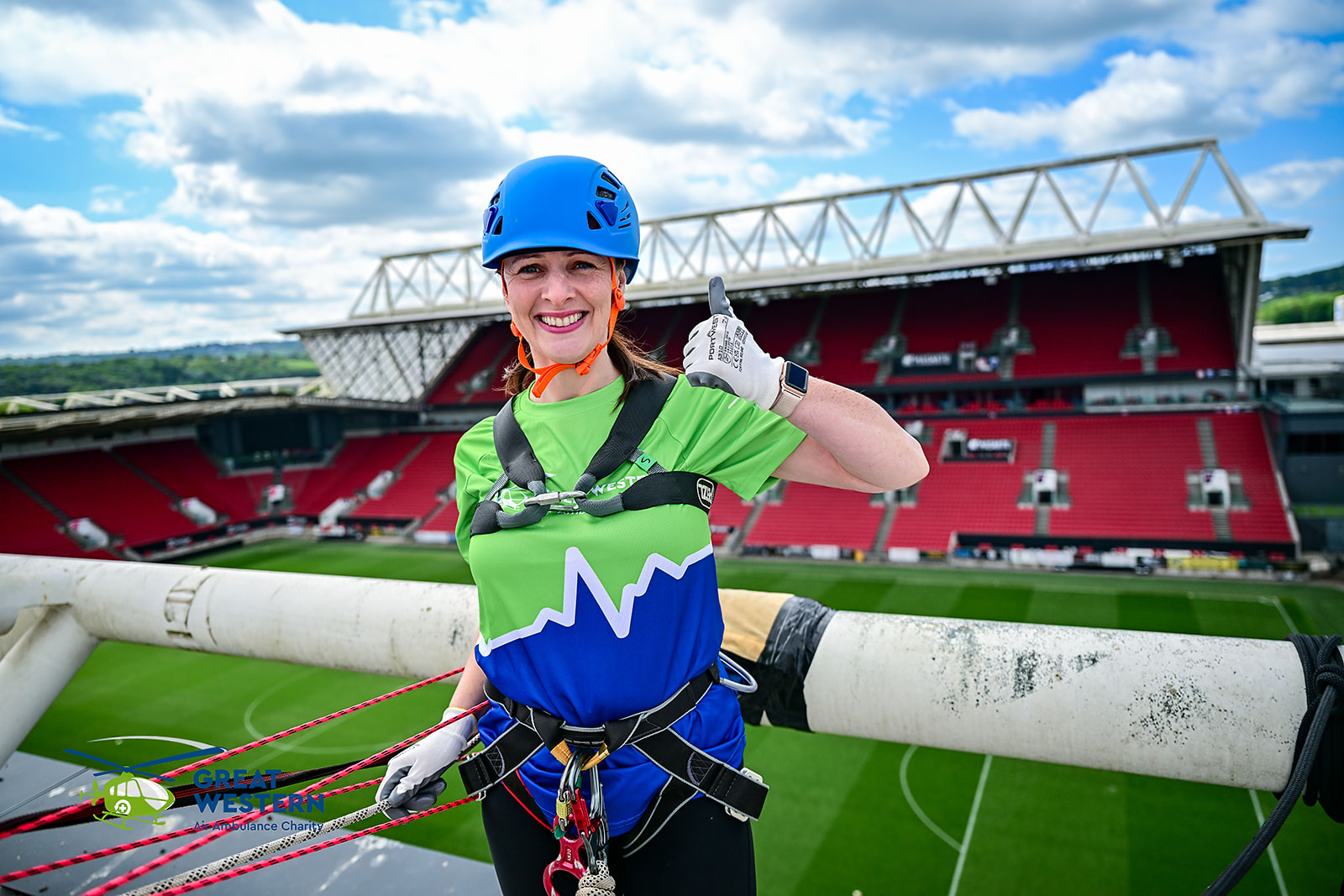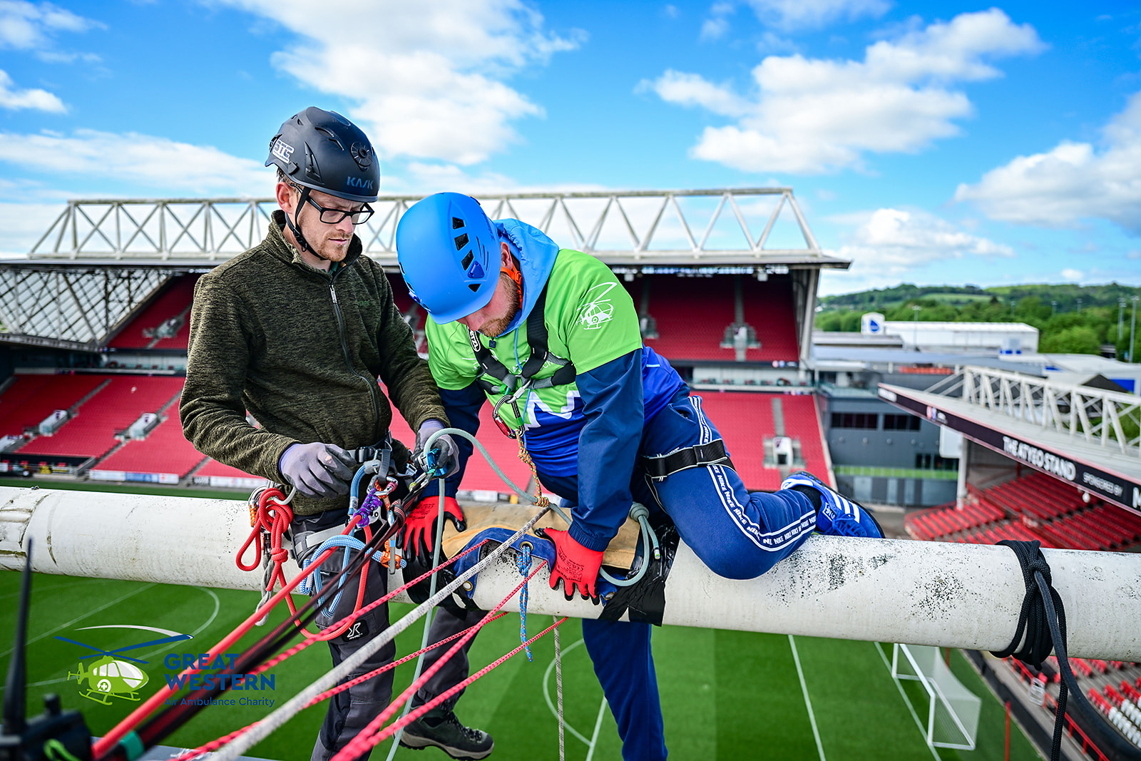 On Sunday 4 May a group of 56 intrepid adventurers climbed to the top of Ashton Gate's Dolman Stand to abseil 75ft to the pitchside below.