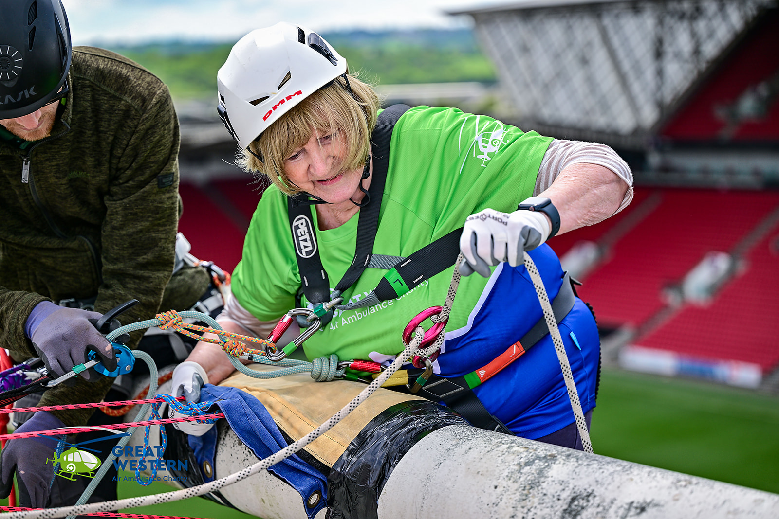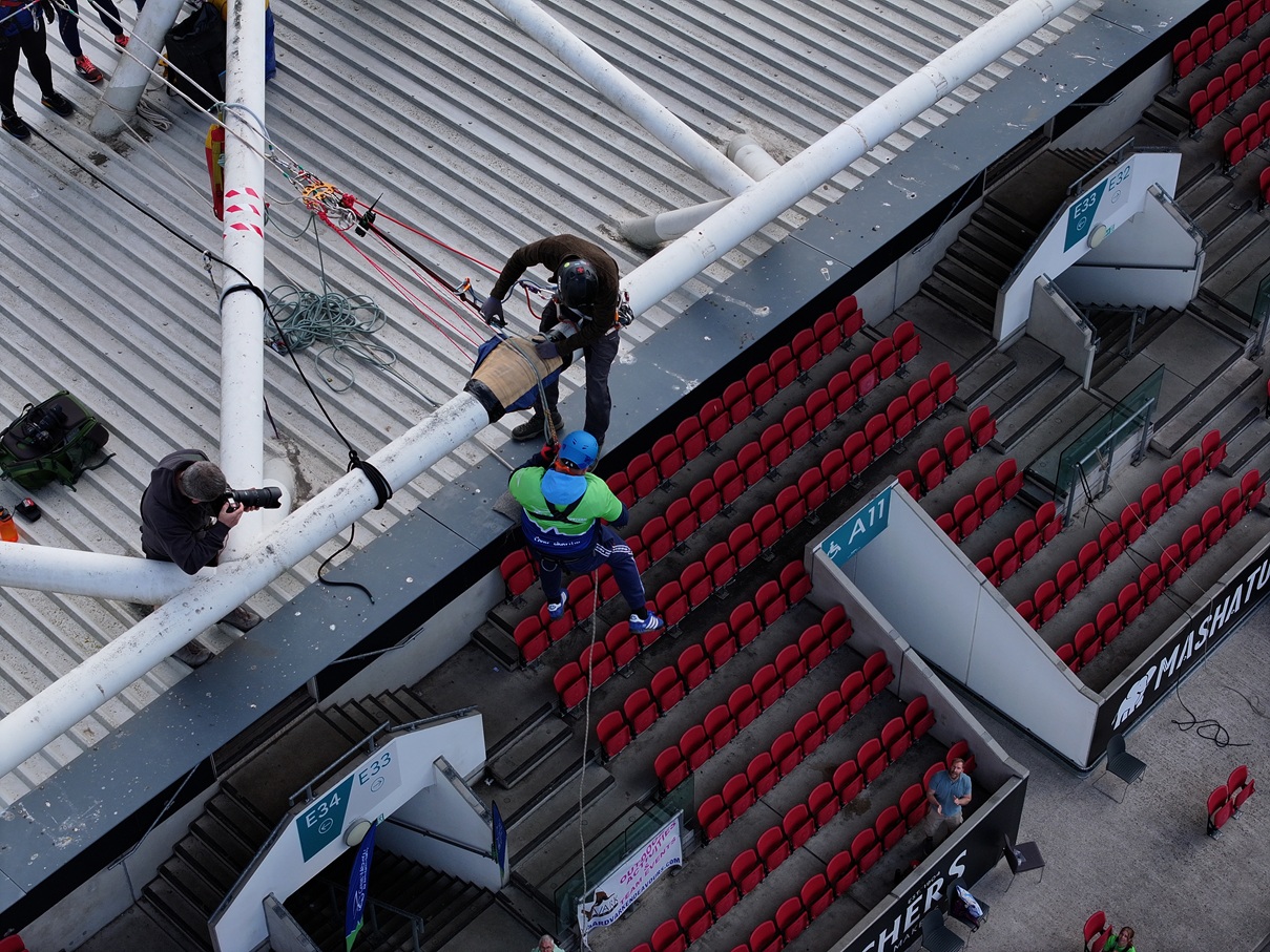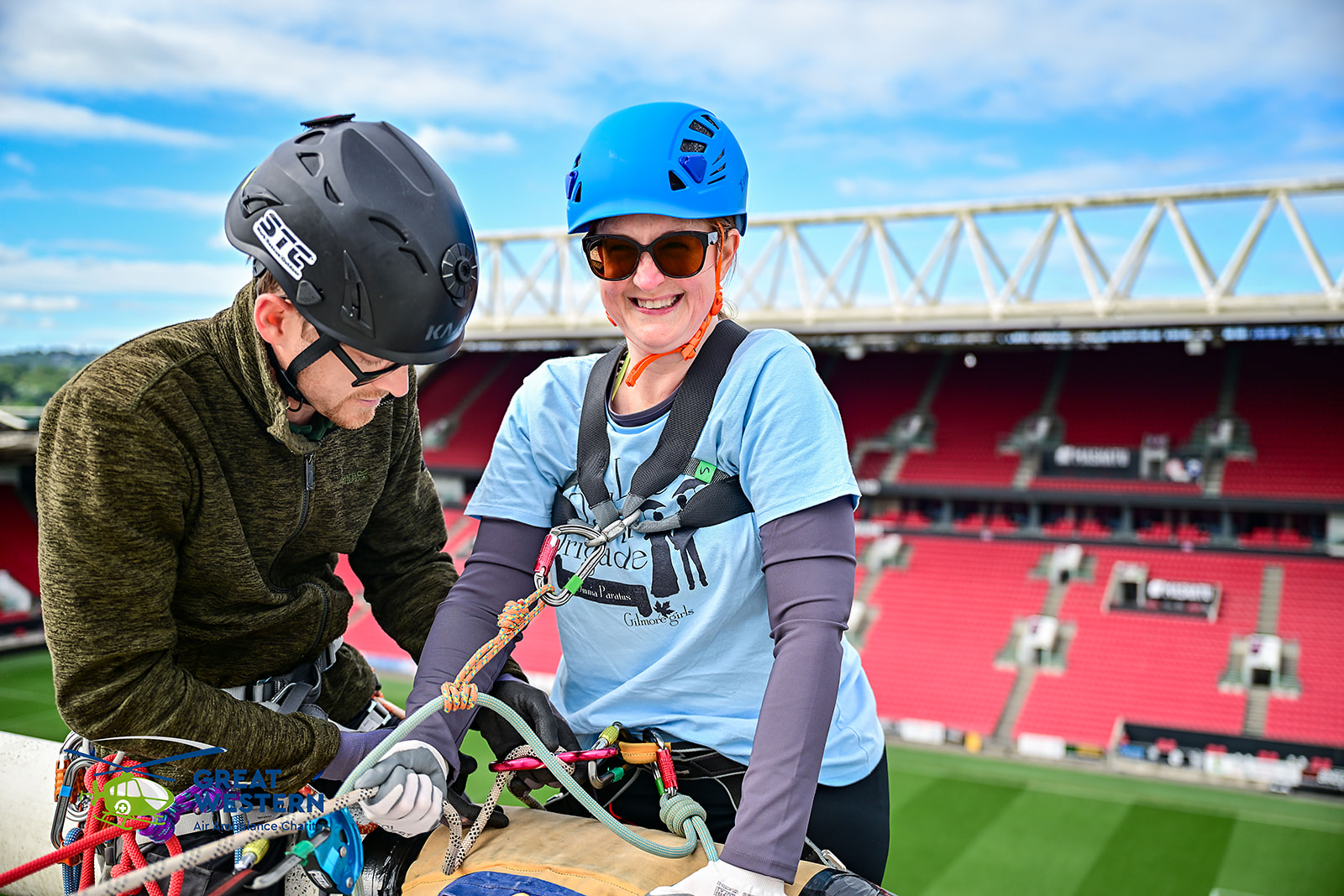On Sunday 4 May a group of 56 intrepid adventurers climbed to the top of Ashton Gate's Dolman Stand to abseil 75ft to the pitchside below.
