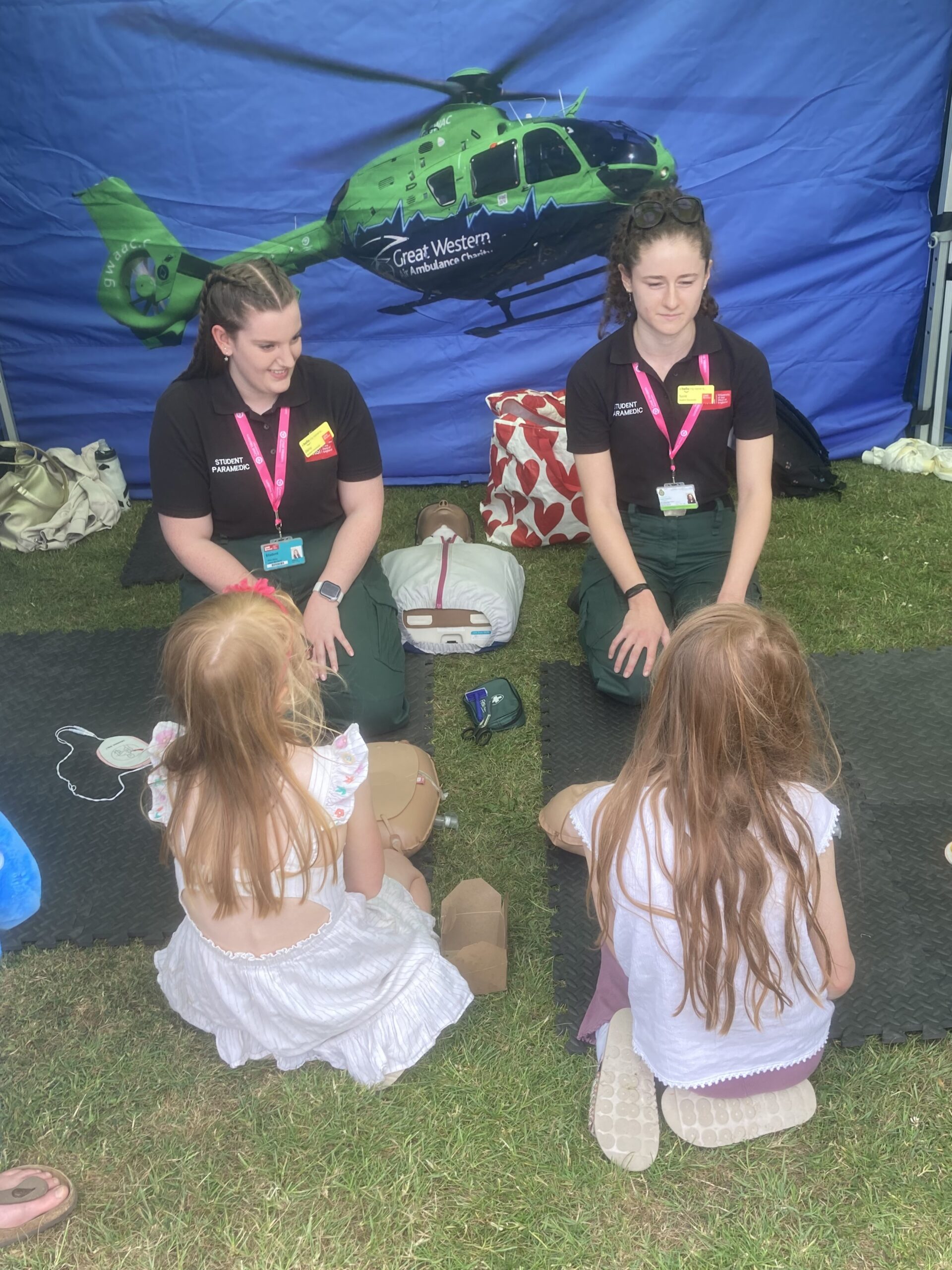 On 31 May, the Thornbury Rotary Club hosted a fundraising fun fair in aid of our charity. GWAAC joined the festivities to offer free CPR and defibrillator training as part of our Great Western Hearts project, giving people the confidence to act in a medical emergency. Visitors of all ages tried on real flight suits and aircrew helmets, and entered a competition to win a behind the scenes tour of our airbase. It was a day filled with family fun and practical skills, all in support of lifesaving care.