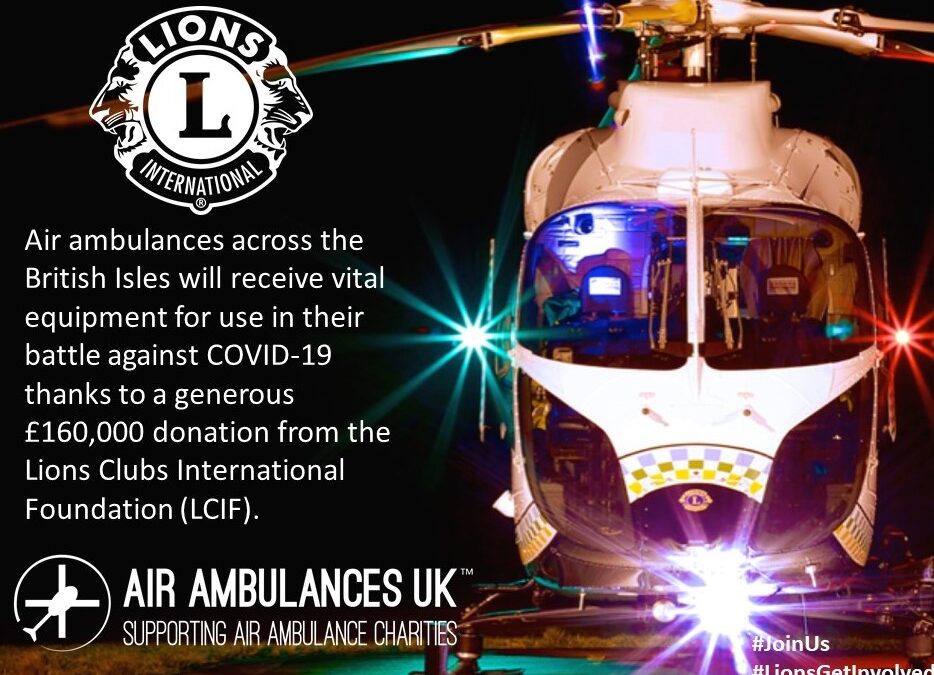 National organisation, Air Ambulances UK, worked closely with the Lions Club International Foundation to obtain £160,000 of funding, which has supplied equipment to many air ambulances across the UK in order to help them remain safe in the battle against the virus.