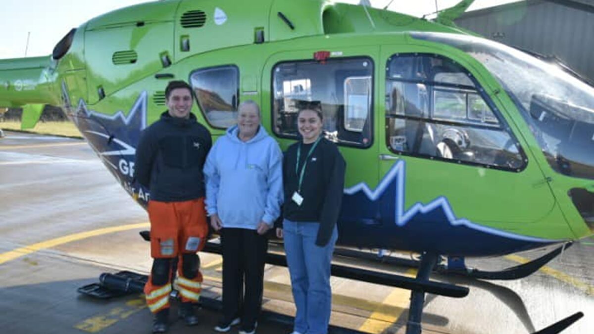The Paramedics had got my heart beating again and shortly after, the team from GWAAC arrived—Dr Nicky, Dr Matt and Specialist Paramedic in Critical Care Callum. Someone in orange said, “Hello Pam, we’re going to put you on a scoop stretcher.”