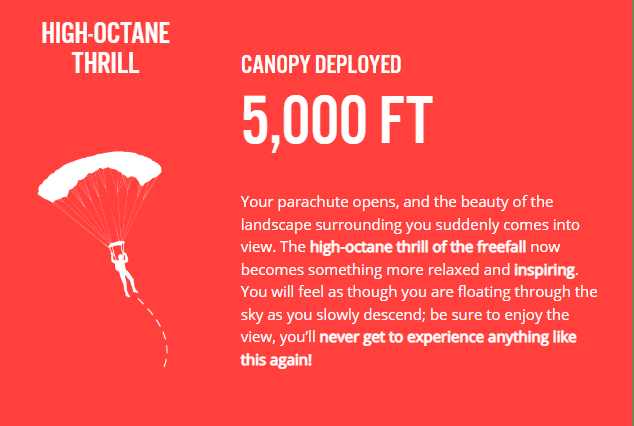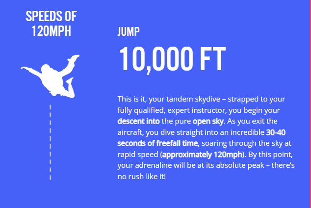 All skydives are ‘tandem’ jumps, meaning that you will be attached to an experienced qualified instructor who will do all the important work, leaving you to enjoy the view - perfect for the newbie adrenaline junkie!
