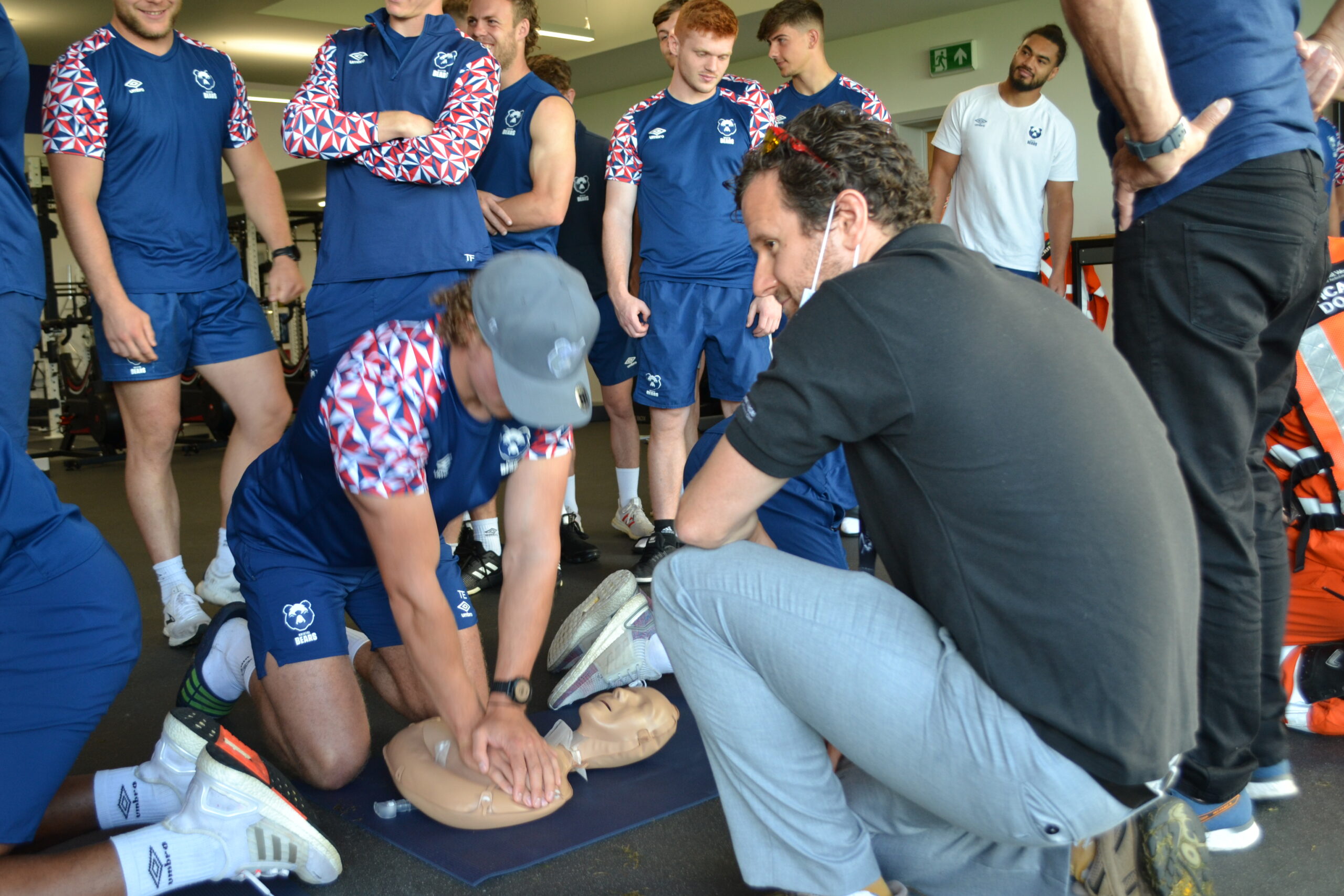 Our Great Western Hearts sessions are delivered by a range of healthcare professionals who are basic life support trained and volunteer to deliver the training to students in secondary schools, community groups and our corporate supporters across our region. The sessions involve a demonstration of DRS-ABC – Danger, Response, Shout, Airway, Breathing, and chest compressions (CPR) - before participants are then given the opportunity to practice the recovery position, CPR and how to use an AED.
